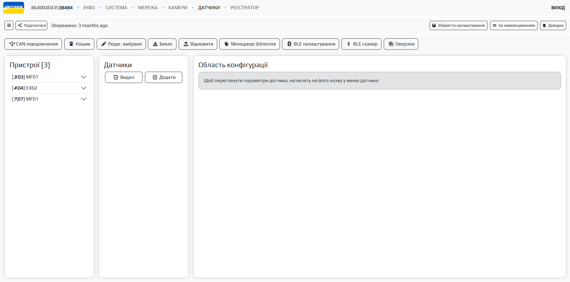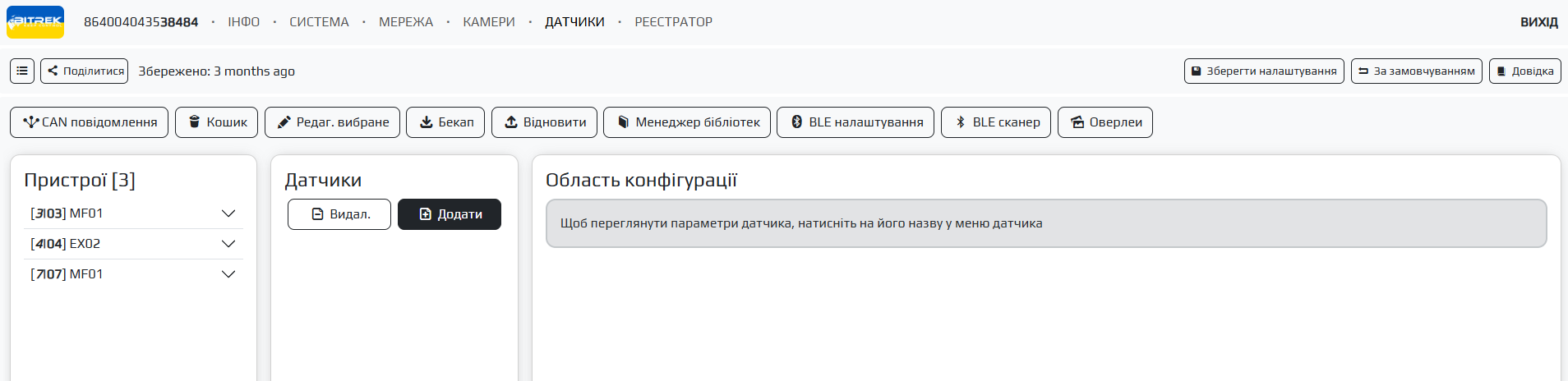 Розділ дозволяє працювати з датчиками а саме додавати та редагувати різні типи датчиків та працювати з ними