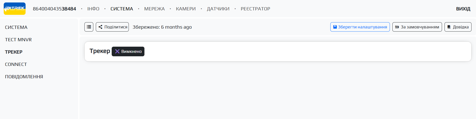 Для налаштування трекеру вам потрібно зайти на відповідну вкладку в розділі СИСТЕМА/ТРЕКЕР та увімкнути трекер натиснувши відповіднку кнопку