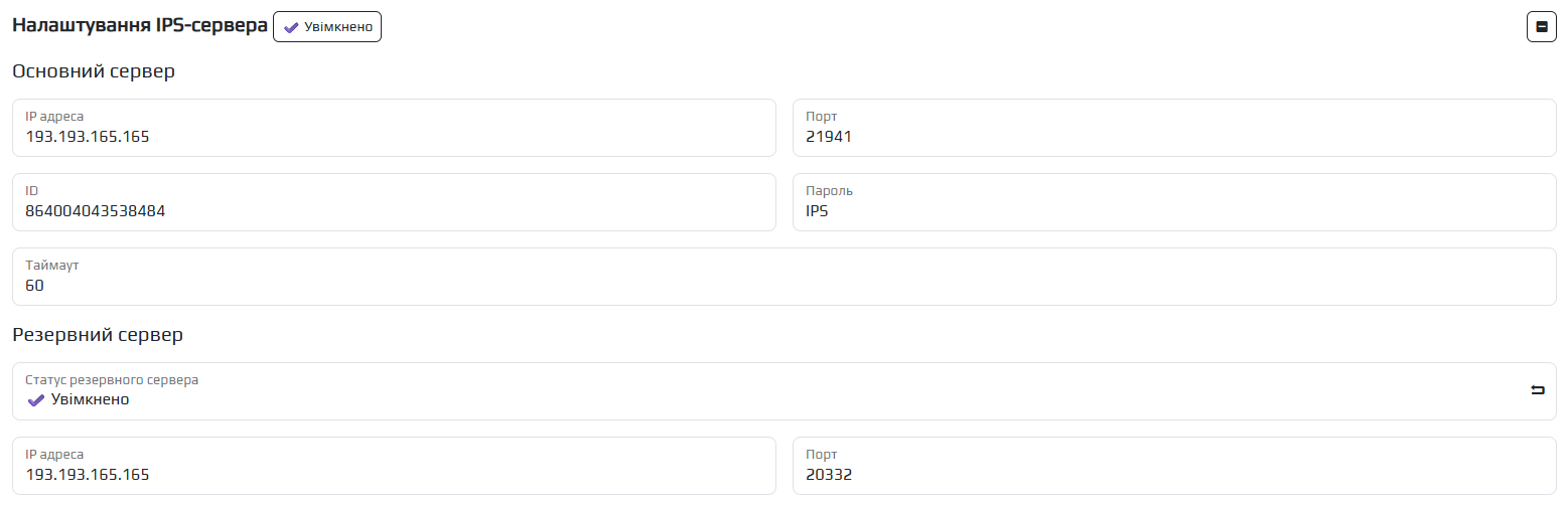 Якщо у вас є також запасний сервер вам потрібно його увімкнути у відповідному меню та прописати адерсу та порт. Якщо із основним сервером не буде зв'язку більше ніж ви задали в полі Таймаут, дані почнуть надсилатися на резервний сервер