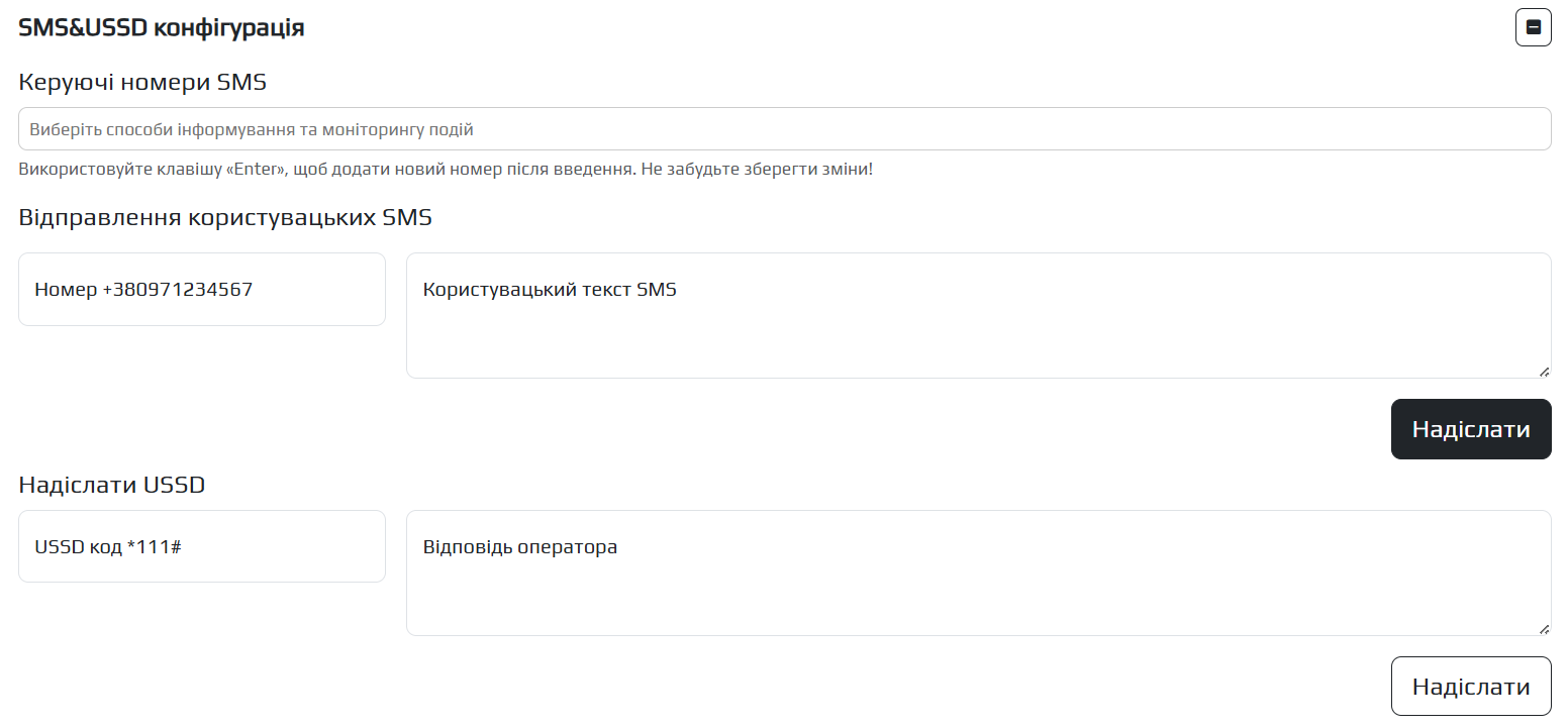 - SMS/USSD конфігурація.