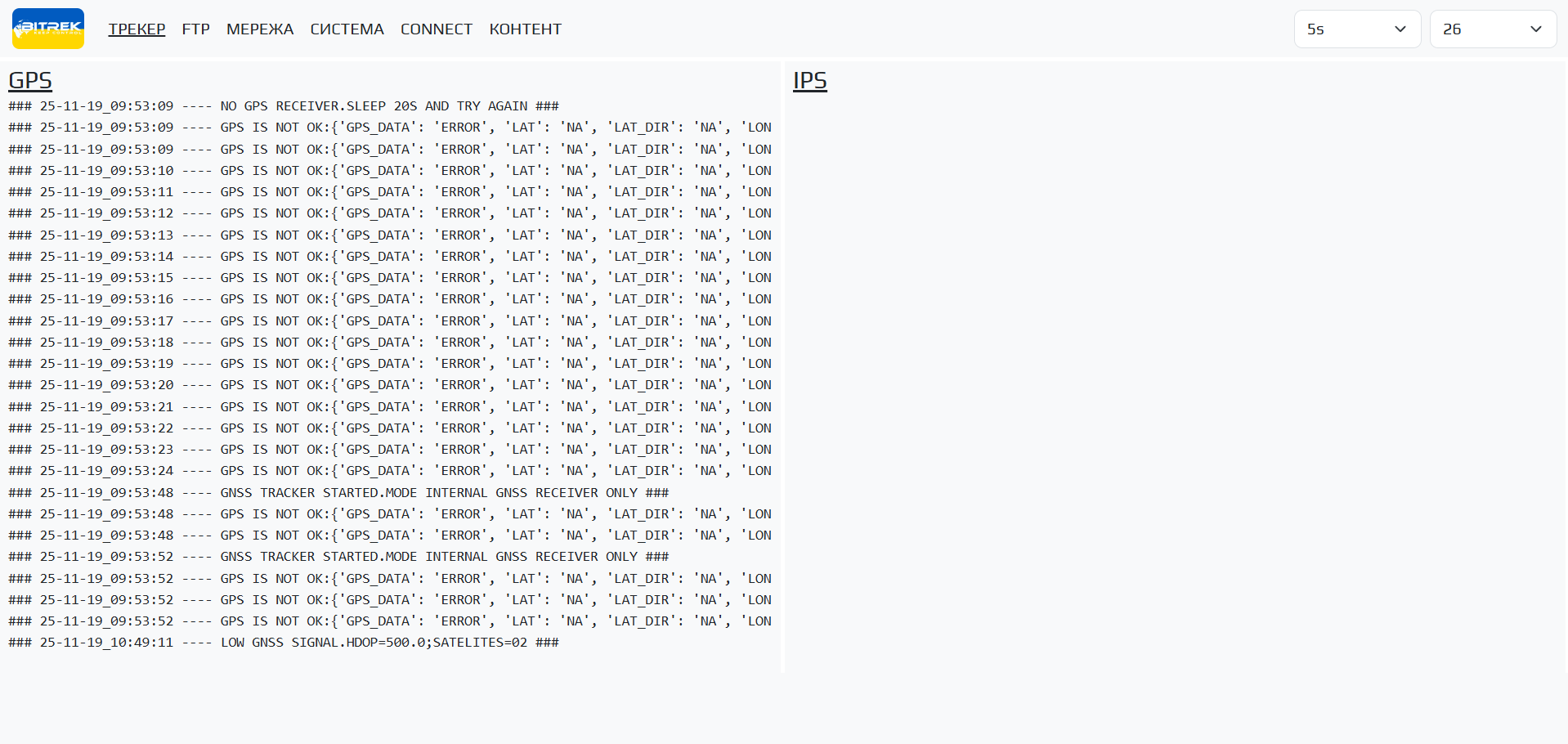 В розділі GPS представлена інформація про ваш GPS трекер