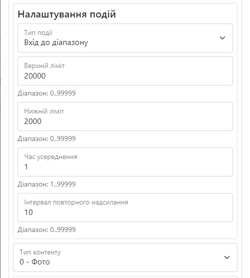 Розділ дозволяє налаштовувати пристрій для фото та відео реєстрації