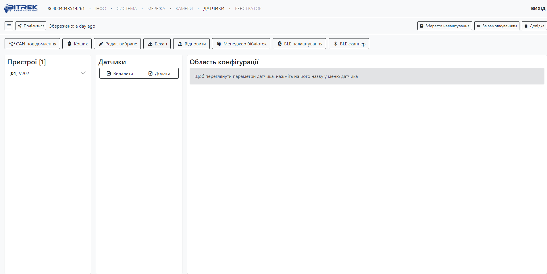 Даний розділ дозволяє побачити пристрої які під’єднані до mNVR, перевірити CAN повідомлення, додати датчики або ж видалити їх, а якщо буде необхідність, ви зможете їх відновити із кошику