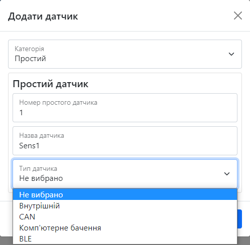Рисунок 9 – меню додавання датчика