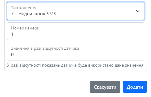 Таблиця 1 – опис параметрів розділу Додати датчики