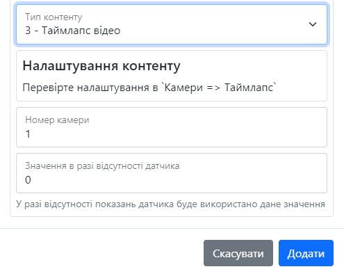 | Time-lapse відео | Дозволяє вибрати посилання RTSP, кількість фото, інтервал між ними та кількість кадрів в секунду |
