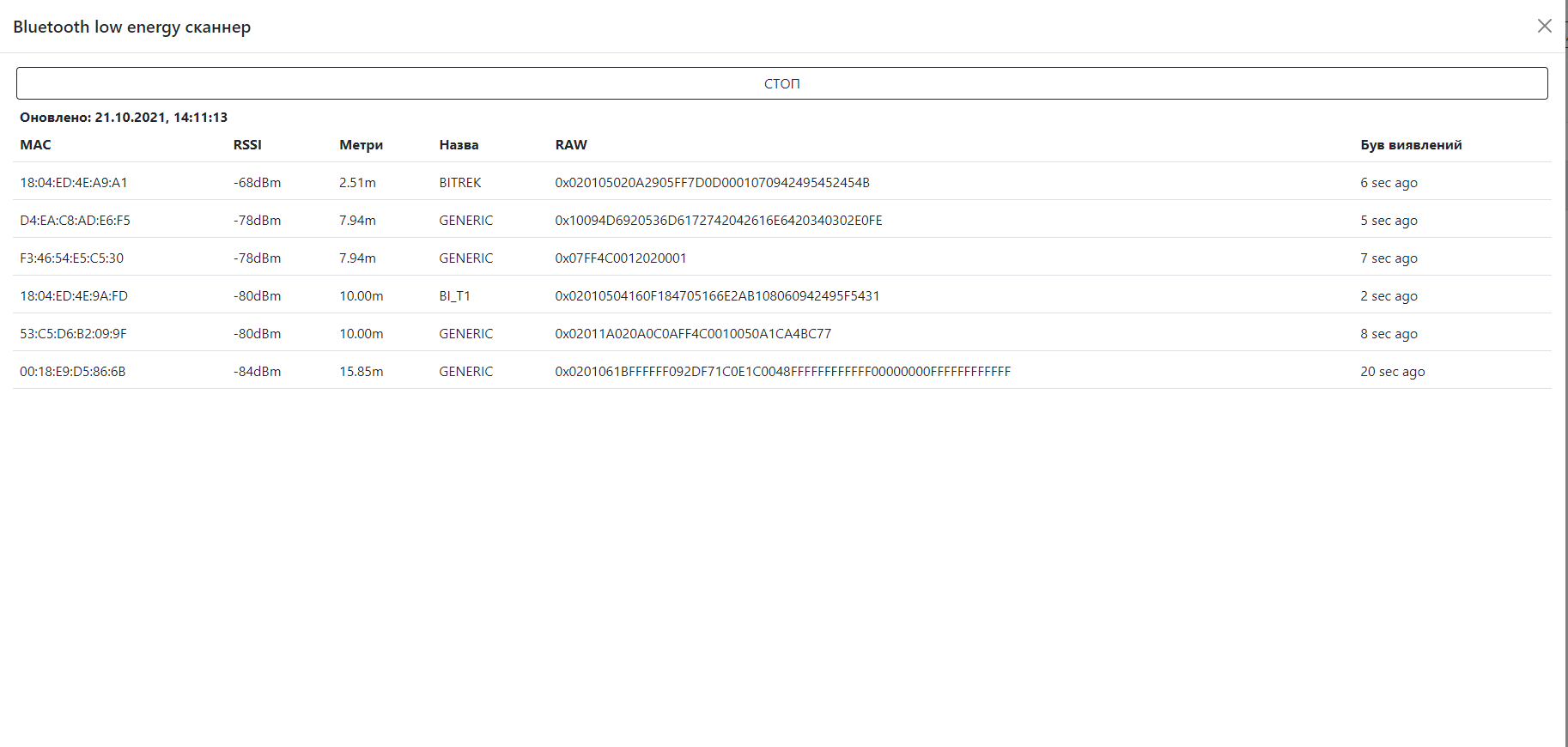 Рисунок 8 - BLE сканер