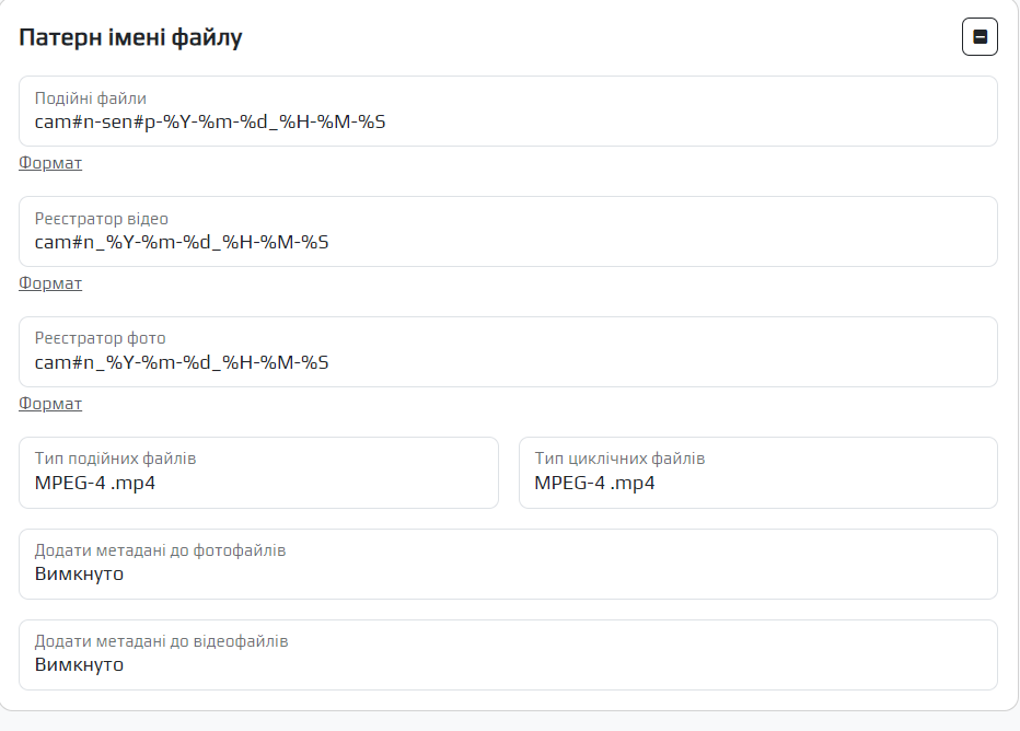 Таблиця 4 – Параметри mNVR для налаштування назви створюваного файлу