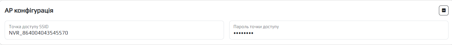 Для конфігурації пристрою можна використовувати підключення Wi-Fi. За замовчуванням, кожен пристрій створює закриту точку доступу. Параметри доступу до точки доступу(вказані в конфігурації АР)