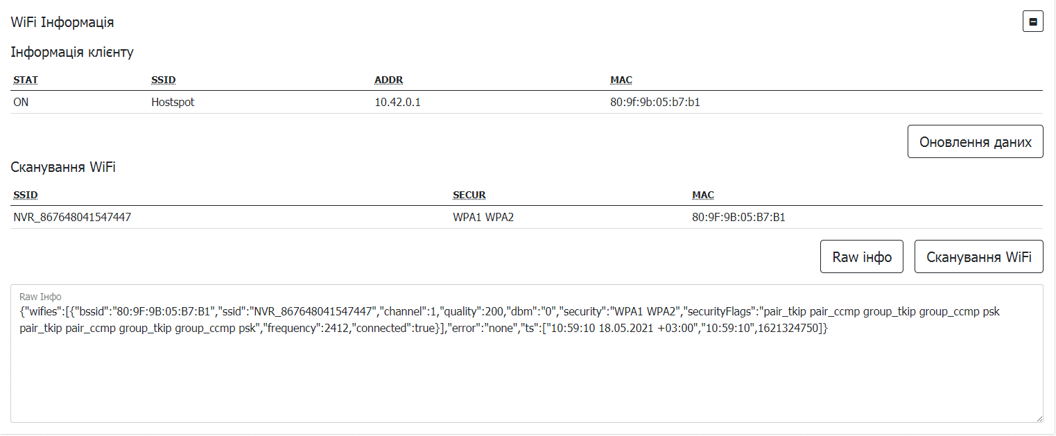 Рисунок 3 – Розділ Wi-Fi Інформація